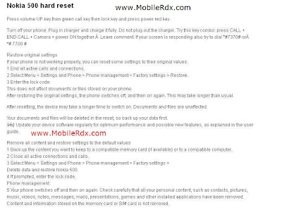 How To Hard Reset Nokia 500-PDA Smartphone How To Hard Reset Nokia 500-PDA SmartphoneView in larger image How To Hard Reset Nokia 500-PDA Smartphone Hard Reset Nokia 500